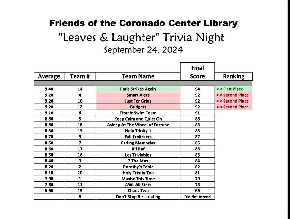 We hope everyone had a wonderful time in supporting the Coronado Center Library and hope to see you in April for our next Trivia Night!