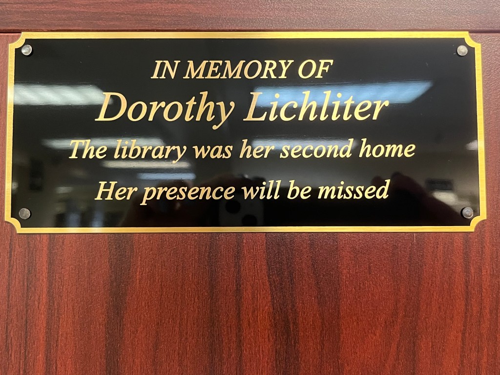 We are very pleased to help honor the late Dorothy Lichliter, a long-time patron of the Coronado Center Library, by adding a memorial plaque in her name to designate the donation of our new “Local Authors” shelf. Thank you to the Lichliter family for this gift in remembrance of a wonderful patron!