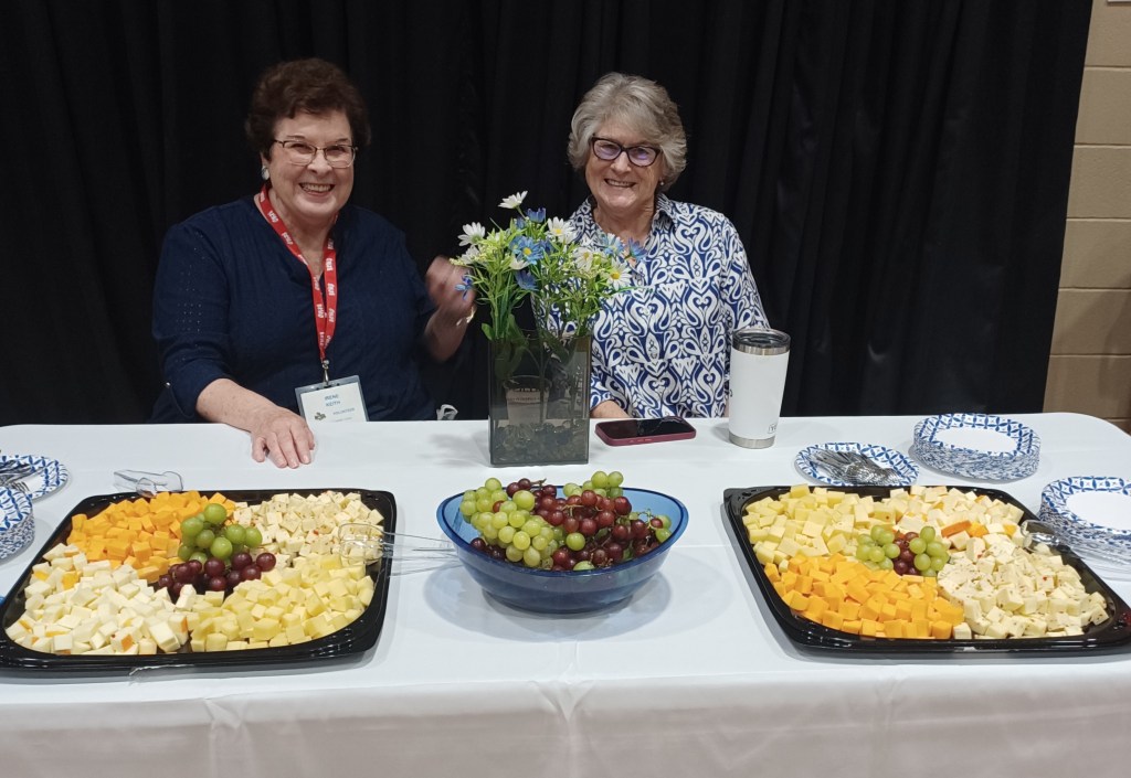Also popular was the cheese and fruit table, overseen here by FOCCL Board member Bonnie Dern and volunteer Irene Keith.